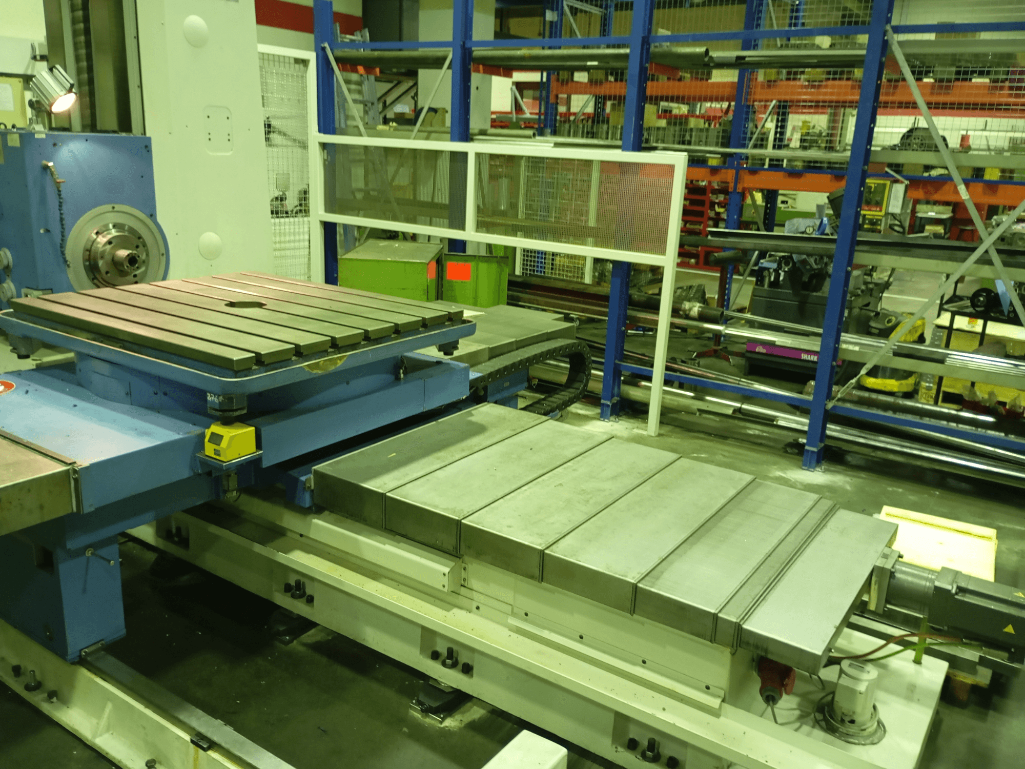 This 5-axis MSC Chemnitz BFT90/5 MSC boring machine was manufactured in 2009. It features a substantial table size of 1000 x 1120 mm with a maximum table load of 2.5 t. The machine offers impressive feed rates of 4000 mm/min and a spindle speed range of 4 – 1600 rpm. If you are looking to get high-quality boring capabilities, consider the MSC Chemnitz BFT90/5 MSC machine we have for sale. Contact us for further details.
